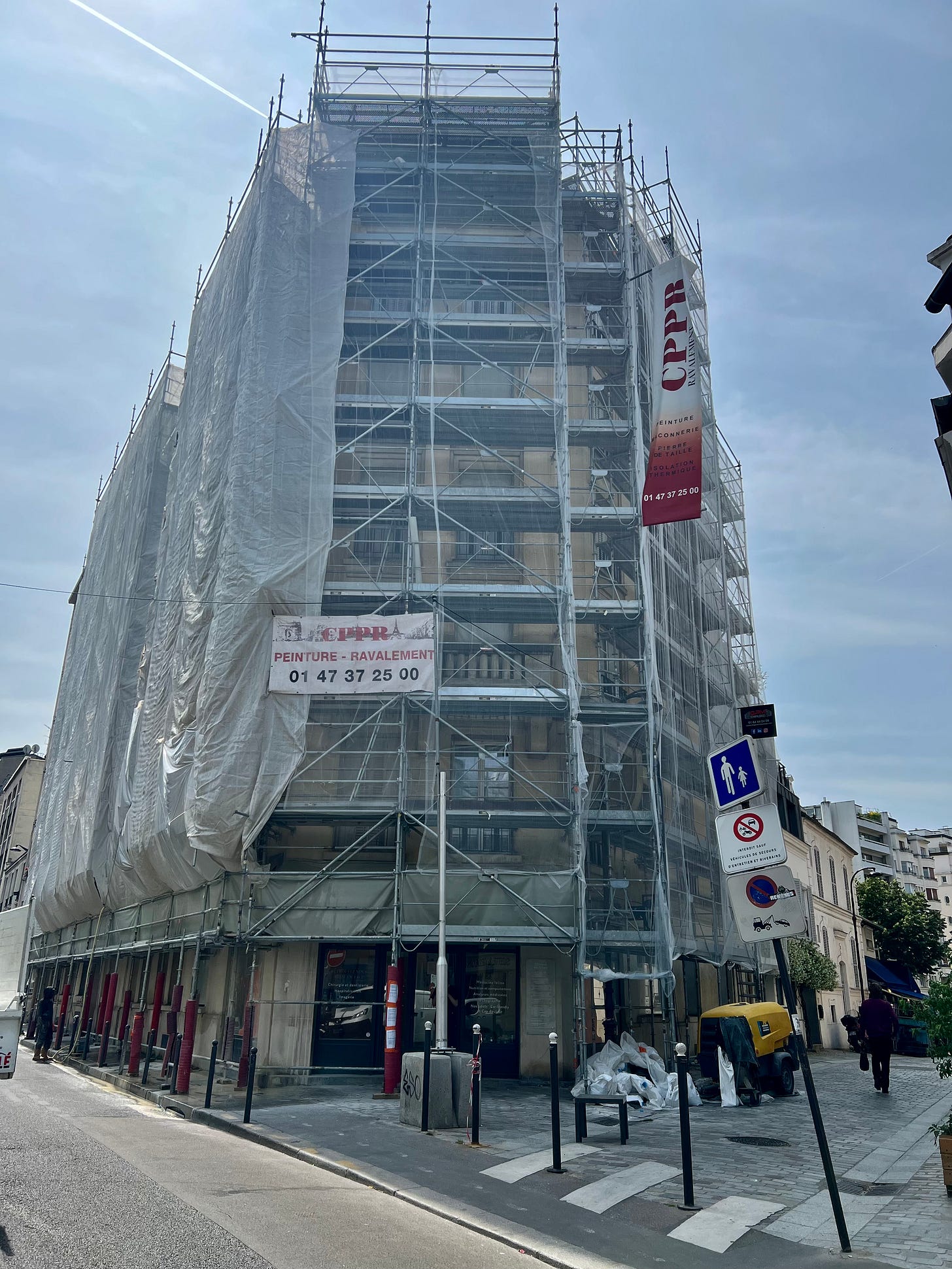 As someone who thrives on responsibility, I am still basking in the fact that I’m not responsible for every single thing in this building. For instance, the façade is being washed, and I didn’t have to call anyone to set that up. Imagine. It was on the calendar when I signed the papers to become an owner here. All I have to do is observe. And it’s been pretty fun to do that during the four weeks it took to put up the scaffolding because the owner of the neighboring apartment decided he wouldn’t let even one piece of it rest on his terrace. The solution involved city employees, an architect, and a duo of hardy women who represent our building frequently standing in knots outside and looking up. I am so grateful I had nothing to do with it that I made them all cookies.