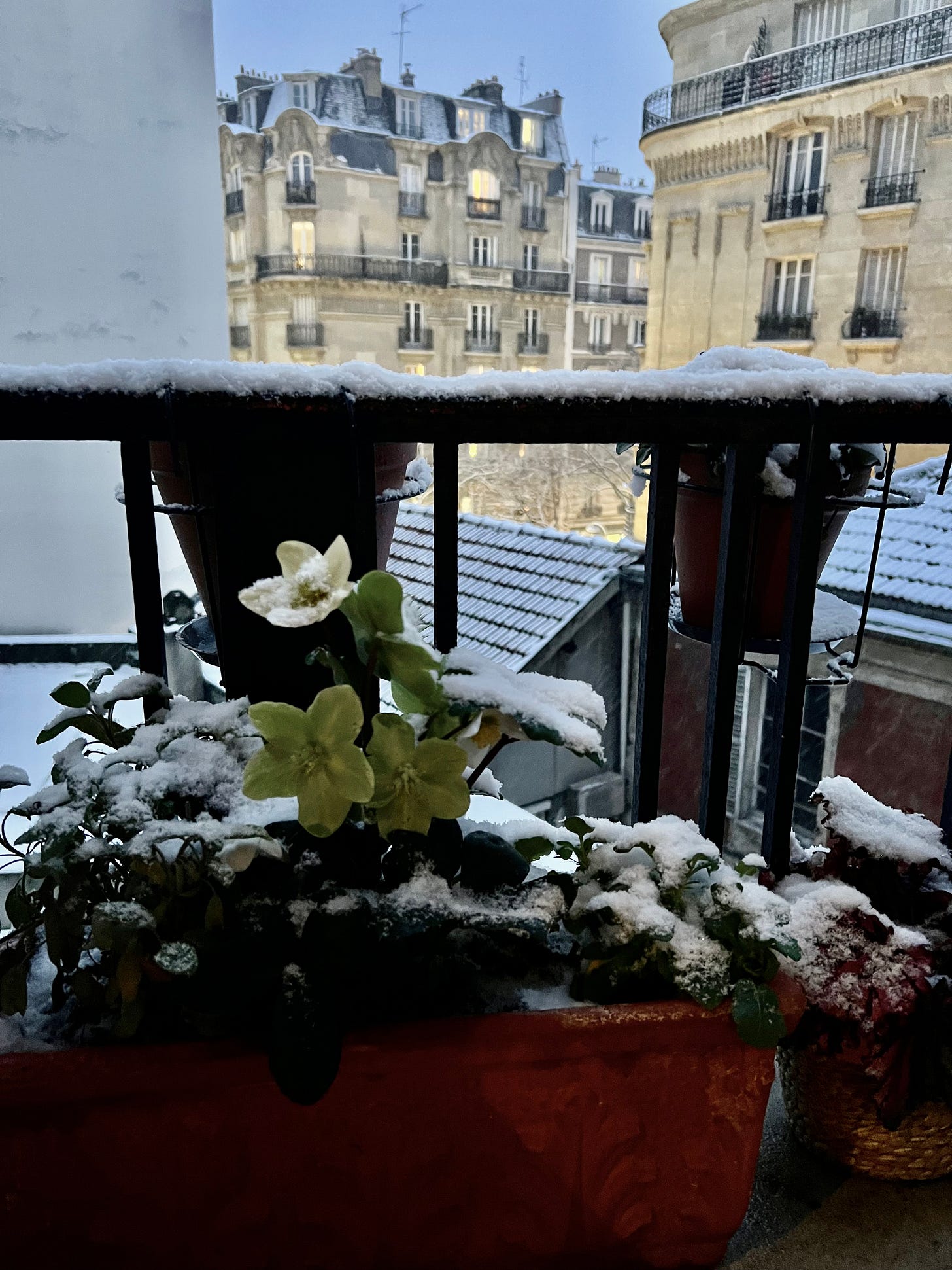 The snow is a nice way to be welcomed back to Paris after the holidays in Texas, which were richer than ever, and weirder than ever, weather wise. We wore shorts and t-shirts most of the time, until the 30 degrees drop in temperature that had us running for the sweaters and overcoats. What does all this weather mean? I don’t ask myself.