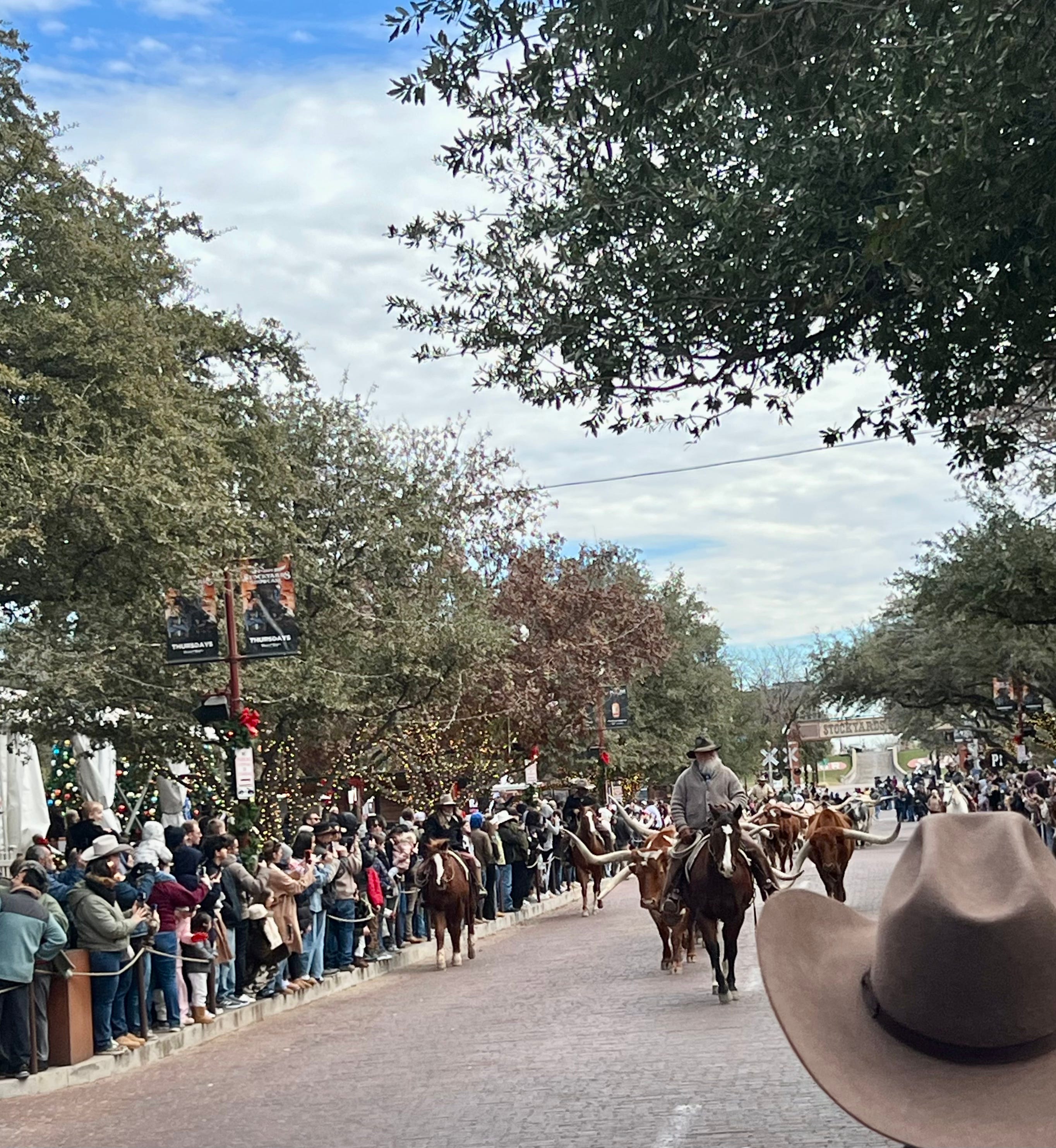 Several eating spots were closed for the holidays, but we made our now bi-annual visit to El Ranchito in the Bishop Arts District of Dallas where the spicy goat stew and the table-side guacamole won the prizes for best of menu. We had other adventures too. We spent a day in downtown Dalls with a couple who are raising pork near Paris, Texas, using regenerative methods which, if the fat pork chop we had is an example, should win them national prizes. And a highlight was witnessing longhorn cattle and cowboys ambling down the main street of the Fort Worth’s Stockyard District, then sitting ourselves down for a giant steak and baked potato lunch. Walking out of the restaurant, my daughter turned to me and said, “I think I’ve eaten a lifetime full of meat since we came here.” Hear hear.